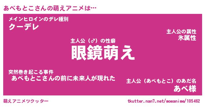 | 男性向けラノベタイトル風あだ名 | 『あべもとこの憂鬱』 |