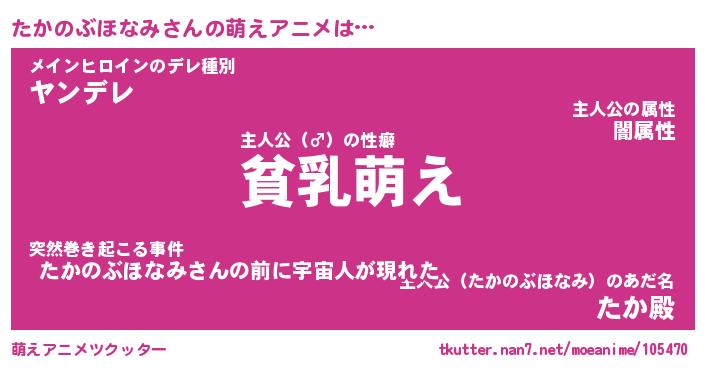 | 男性向けラノベタイトル風あだ名 | 『たかのぶほなみの憂鬱』 |