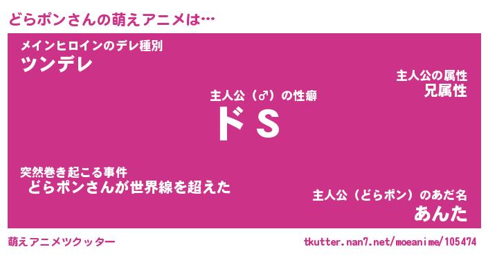 | 男性向けラノベタイトル風あだ名 | 『どらポンの憂鬱』 |