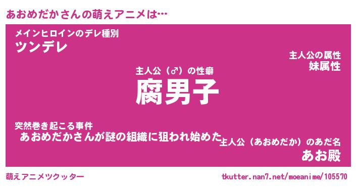 | 男性向けラノベタイトル風あだ名 | 『アオメダカアートオンライン』 |