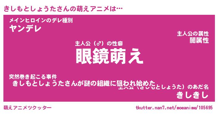 | 男性向けラノベタイトル風あだ名 | 『きしもとしょうたの憂鬱』 |