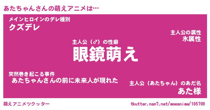 | 男性向けラノベタイトル風あだ名 | 『あたちゃんの憂鬱』 |