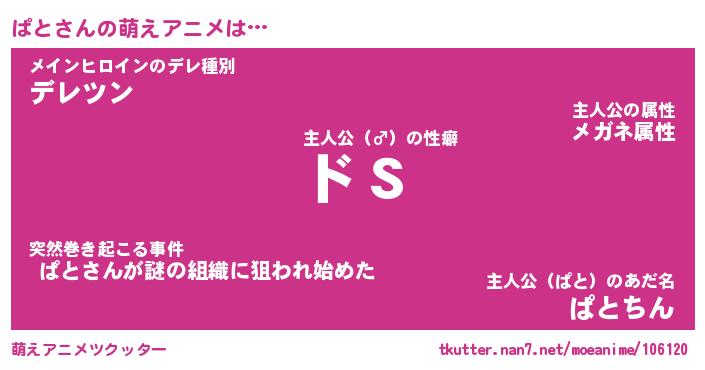 | 男性向けラノベタイトル風あだ名 | 『ぱとの憂鬱』 |