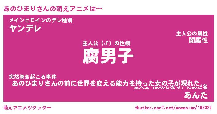 | ヒーロー風カッコイイあだ名 | 『スーパーアノヒマリ』『天弓騎士アノ』 |