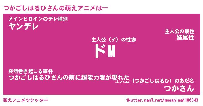 | 女子向けラノベタイトル風あだ名 | 『(仮)つかごしはるひのやんごとなき事情』 |