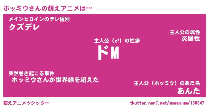 | 男性向けラノベタイトル風あだ名 | 『ホッミウの憂鬱』 |