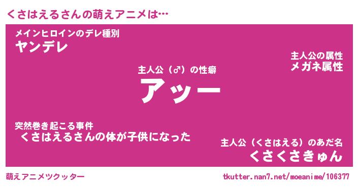 | 肩書あだ名 | 『くさはえる社長令嬢』『くさはえる班長』 |