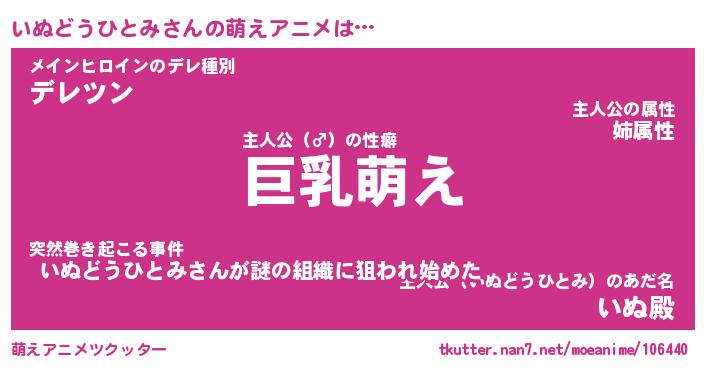 | 男性向けラノベタイトル風あだ名 | 『いぬどうひとみの憂鬱』 |
