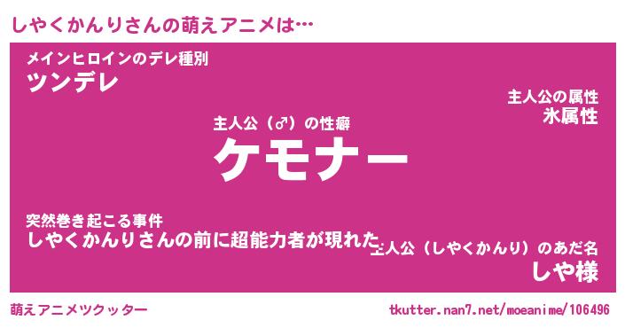 | 肩書あだ名 | 『しやくかんり御曹司』 |