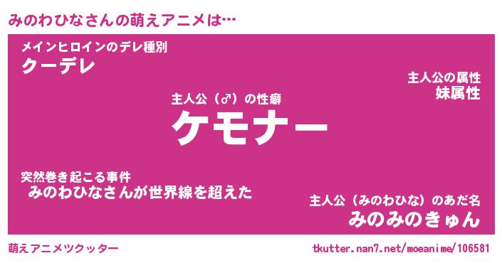 | 男性向けラノベタイトル風あだ名 | 『ミノワヒナアートオンライン』 |