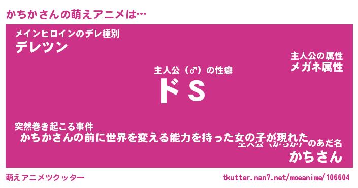 | 男性向けラノベタイトル風あだ名 | 『かちかの憂鬱』 |