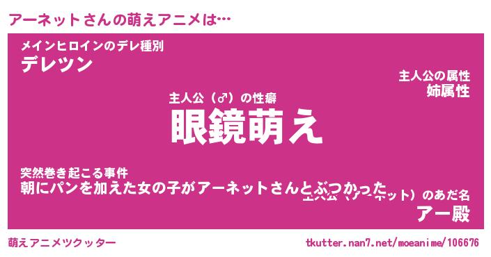 | 男性向けラノベタイトル風あだ名 | 『アーネットの憂鬱』 |