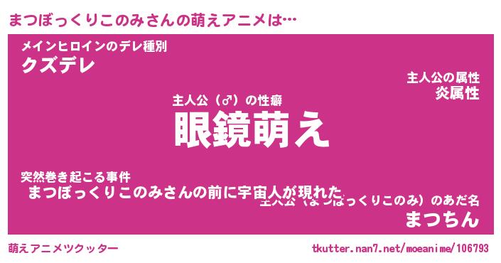 | 男性向けラノベタイトル風あだ名 | 『まつぼっくりこのみの憂鬱』 |