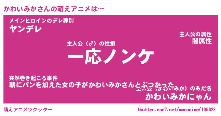 | ファンタジー風あだ名 | 『カワフェル』『エターナルカワイミカー』 |