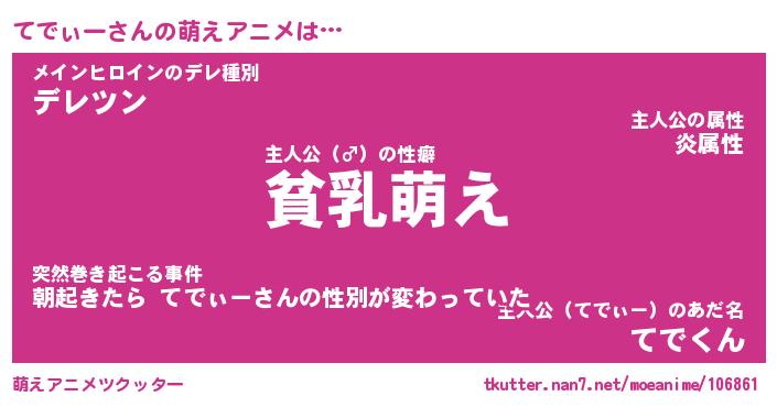 | 男性向けラノベタイトル風あだ名 | 『てでぃーの憂鬱』 |