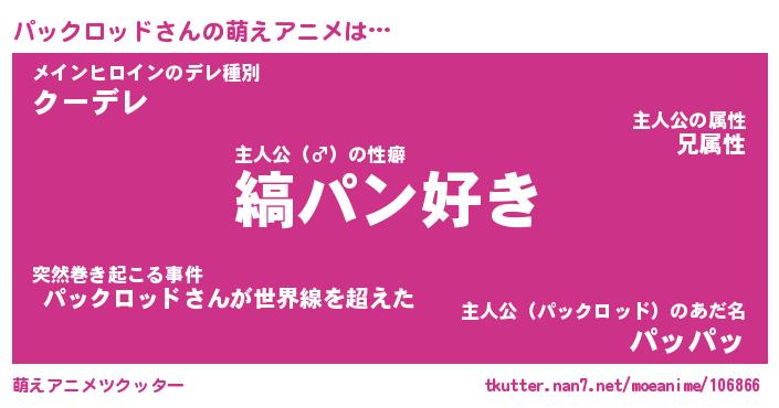| 男性向けラノベタイトル風あだ名 | 『パックロッドの憂鬱』 |