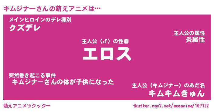 | 男性向けラノベタイトル風あだ名 | 『キムジナーアートオンライン』 |
