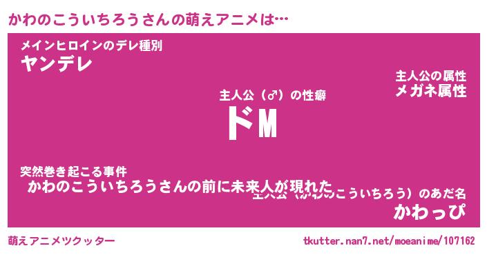 | 男性向けラノベタイトル風あだ名 | 『かわのこういちろうの憂鬱』 |