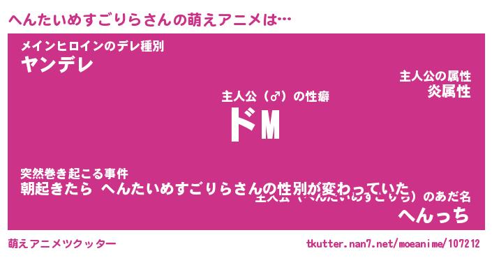 | 胡散臭い通販商品みたいなあだ名 | 『必ず成功するブレスレット…その名も「へんたいめすごりら」』 |