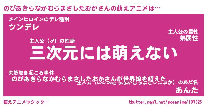 | ツイッター | のびあきらなかむらまさしたおかさんのツイッターID『katatsumuri_nyan』 |