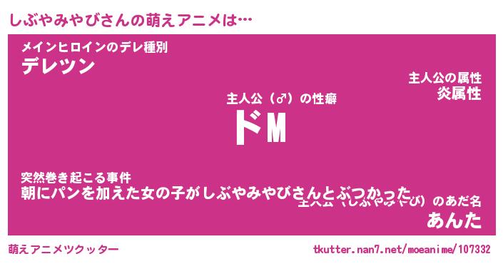 | 女子向けラノベタイトル風あだ名 | 『(仮)しぶやみやびのやんごとなき事情』 |