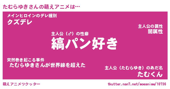 | 男性向けラノベタイトル風あだ名 | 『たむらゆきの憂鬱』 |