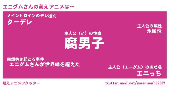 | 意味不明あだ名 | 『ペロリンエニグム』『永久保存エニグム』 |