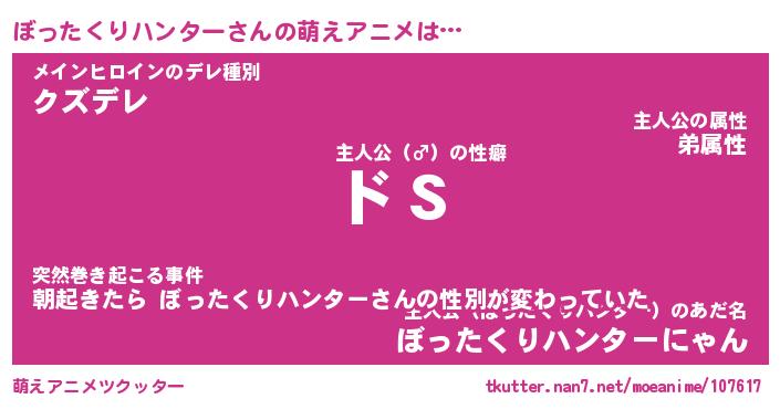 | 男性向けラノベタイトル風あだ名 | 『ぼったくりハンターの憂鬱』 |