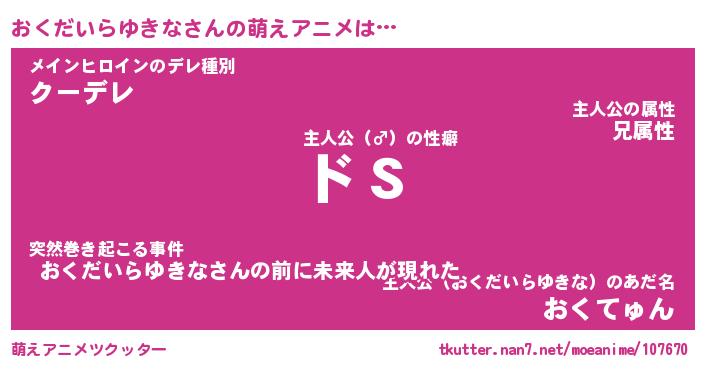 | 女子向けラノベタイトル風あだ名 | 『(仮)おくだいらゆきなのやんごとなき事情』 |