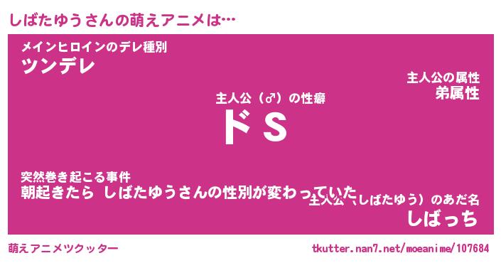 | 女子向けラノベタイトル風あだ名 | 『(仮)しばたゆうのやんごとなき事情』 |