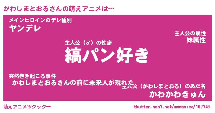 | 女子向けラノベタイトル風あだ名 | 『(仮)かわしまとおるのやんごとなき事情』 |