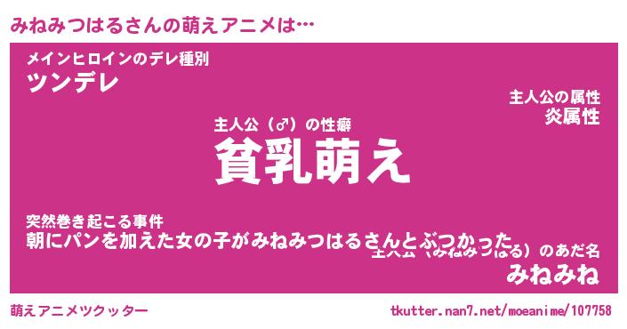 | 男性向けラノベタイトル風あだ名 | 『みねみつはるの憂鬱』 |