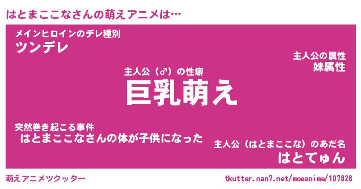 | 男性向けラノベタイトル風あだ名 | 『はとまここなの憂鬱』 |
