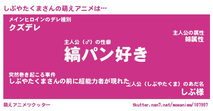 | 男性向けラノベタイトル風あだ名 | 『しぶやたくまの憂鬱』 |