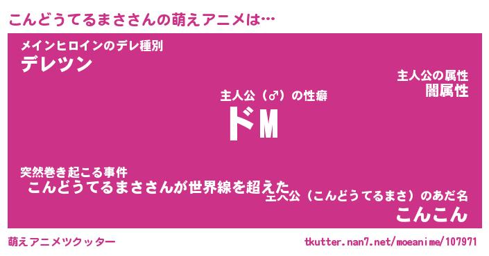 | 男性向けラノベタイトル風あだ名 | 『こんどうてるまさの憂鬱』 |