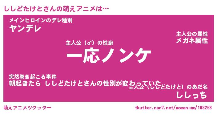 | ヘコむあだ名 | 『ししふぇ~』『酢こんぶ』『ししを』 |