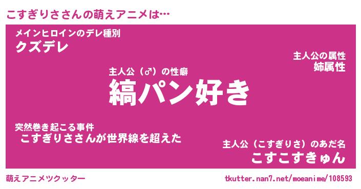 | 男性向けラノベタイトル風あだ名 | 『こすぎりさの憂鬱』 |