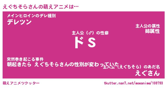 | 男性向けラノベタイトル風あだ名 | 『えぐちそらの憂鬱』 |