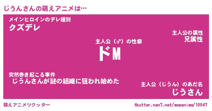 | 男性向けラノベタイトル風あだ名 | 『じうんの憂鬱』 |
