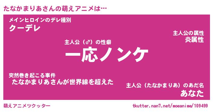 | ヒーロー風カッコイイあだ名 | 『スーパータナカマリア』『天弓騎士タナ』 |