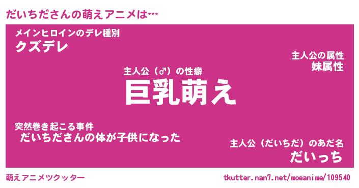 | 男性向けラノベタイトル風あだ名 | 『だいちだの憂鬱』 |