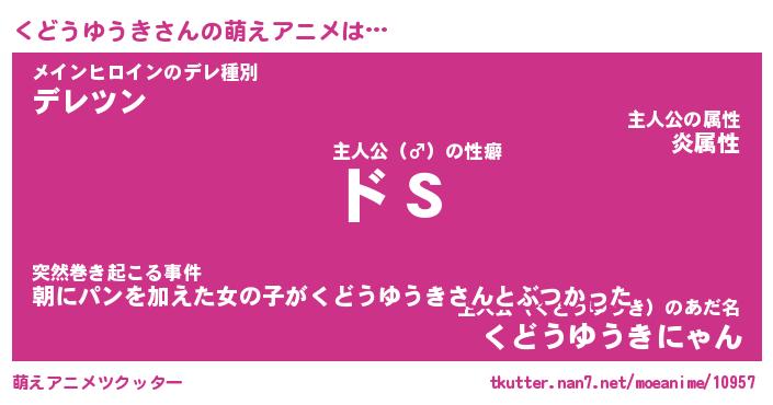 | 女子向けラノベタイトル風あだ名 | 『(仮)くどうゆうきのやんごとなき事情』 |