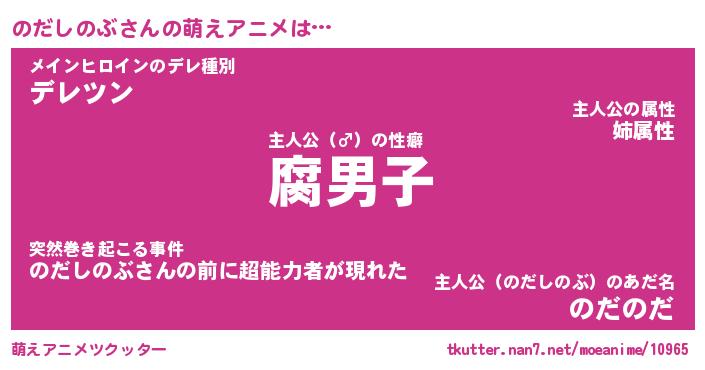 | 2回繰り返すあだ名 | 『のだのだ』『ののだだ』『おやおや』 |