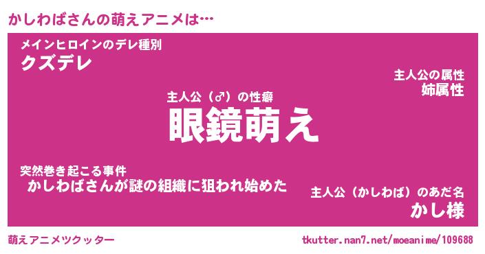 | ヒーロー風カッコイイあだ名 | 『スーパーカシワバ』『幻影騎士カシ』 |