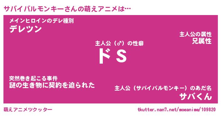 | 男性向けラノベタイトル風あだ名 | 『サバイバルモンキーの憂鬱』 |