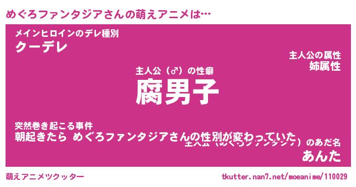 | 男性向けラノベタイトル風あだ名 | 『メグロファンタジアアートオンライン』 |