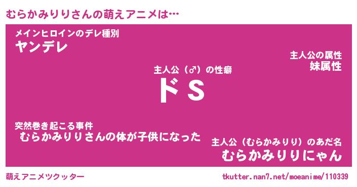 | 女子向けラノベタイトル風あだ名 | 『(仮)むらかみりりのやんごとなき事情』 |