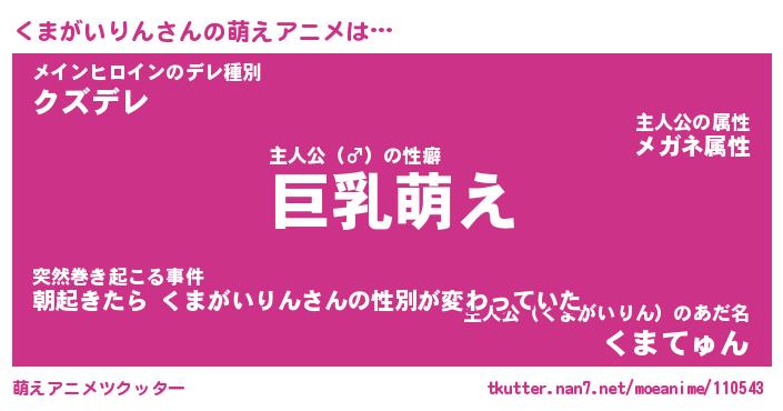 | 2回繰り返すあだ名 | 『くまくま』『くくまま』『うるうる』 |