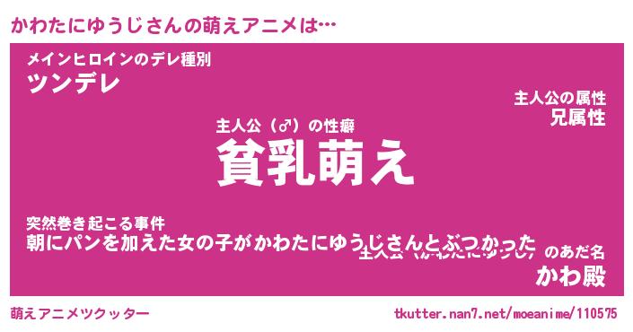 | 女子向けラノベタイトル風あだ名 | 『(仮)かわたにゆうじのやんごとなき事情』 |