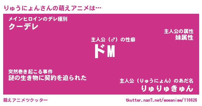 | 男性向けラノベタイトル風あだ名 | 『りゅうにょんの憂鬱』 |